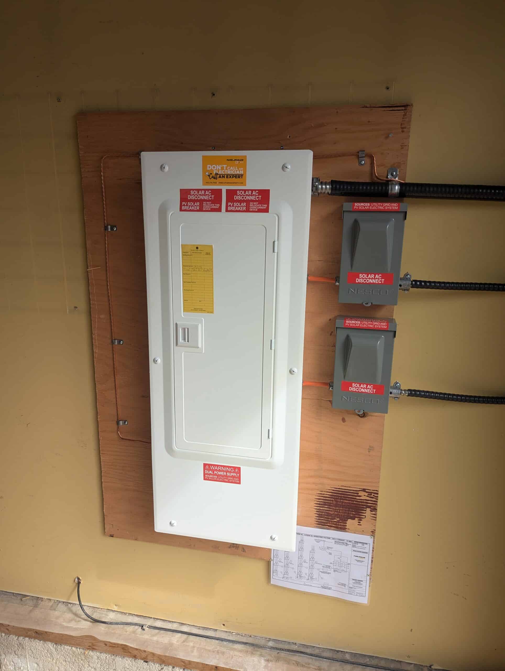 The installation required careful planning due to multiple roof faces, ensuring each array was optimized for sun exposure throughout the day. Fishing the wiring cleanly and sub-feeding the existing 100A house panel from the new 200A garage panel was a key part of the design, giving the homeowner full capacity for present and future loads.