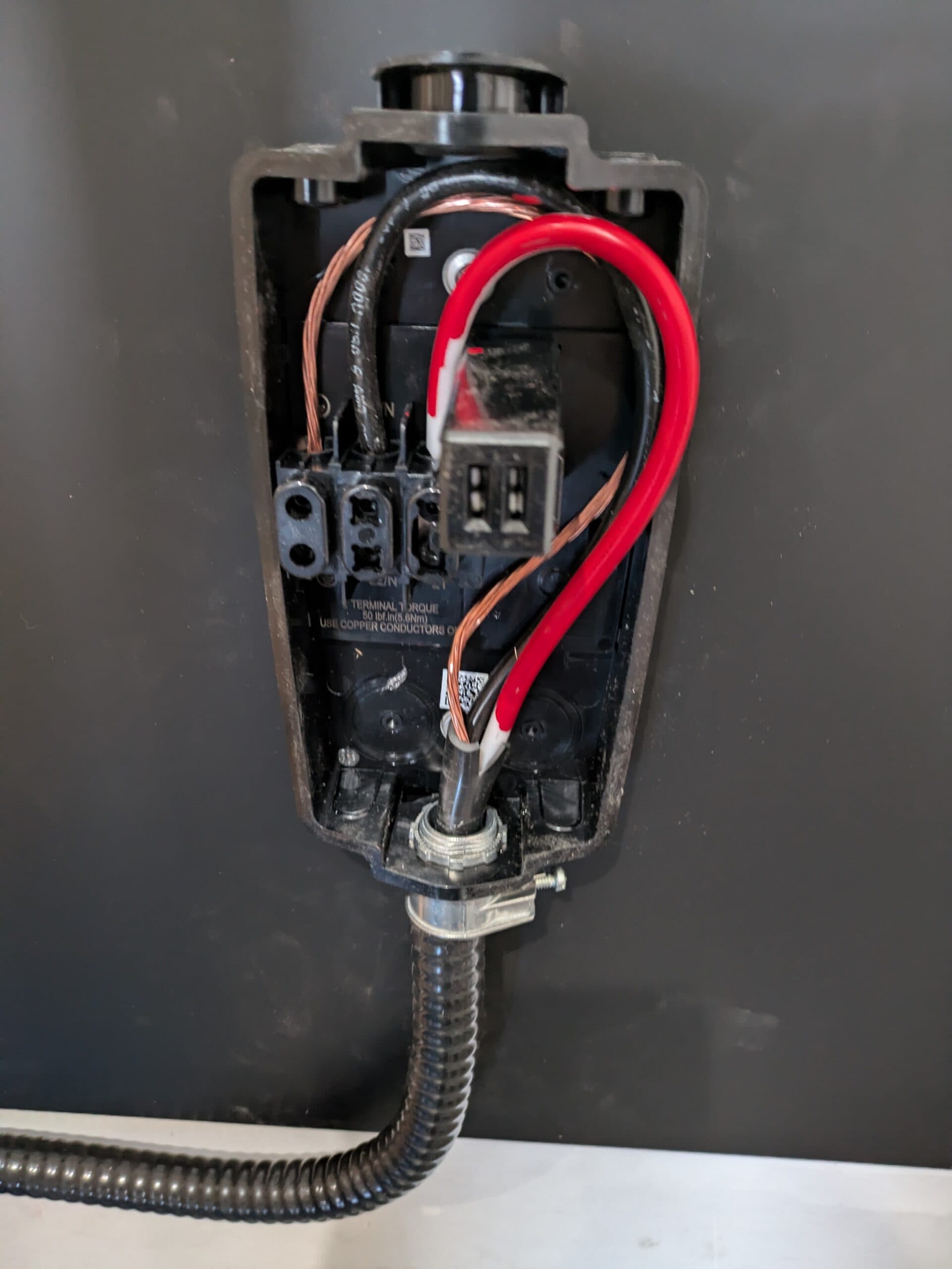 The garage was finished with drywall, requiring careful routing to keep the installation clean and tidy. By adding a black mounting board, we not only made the charger stand out visually but also delivered a professional look that sets our installations apart from competitors.